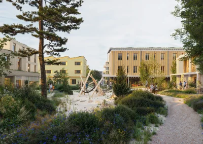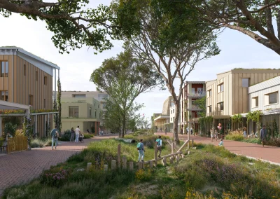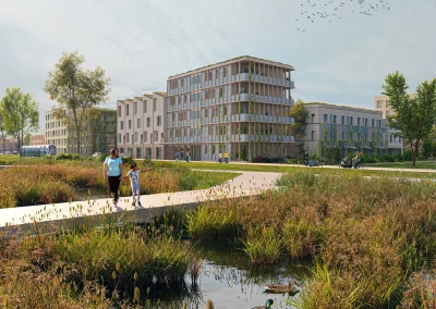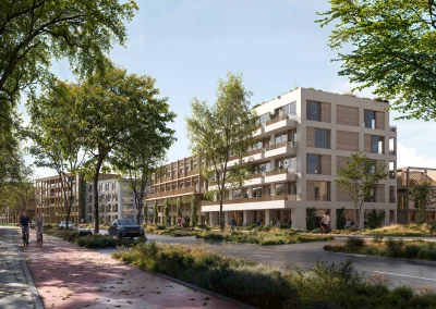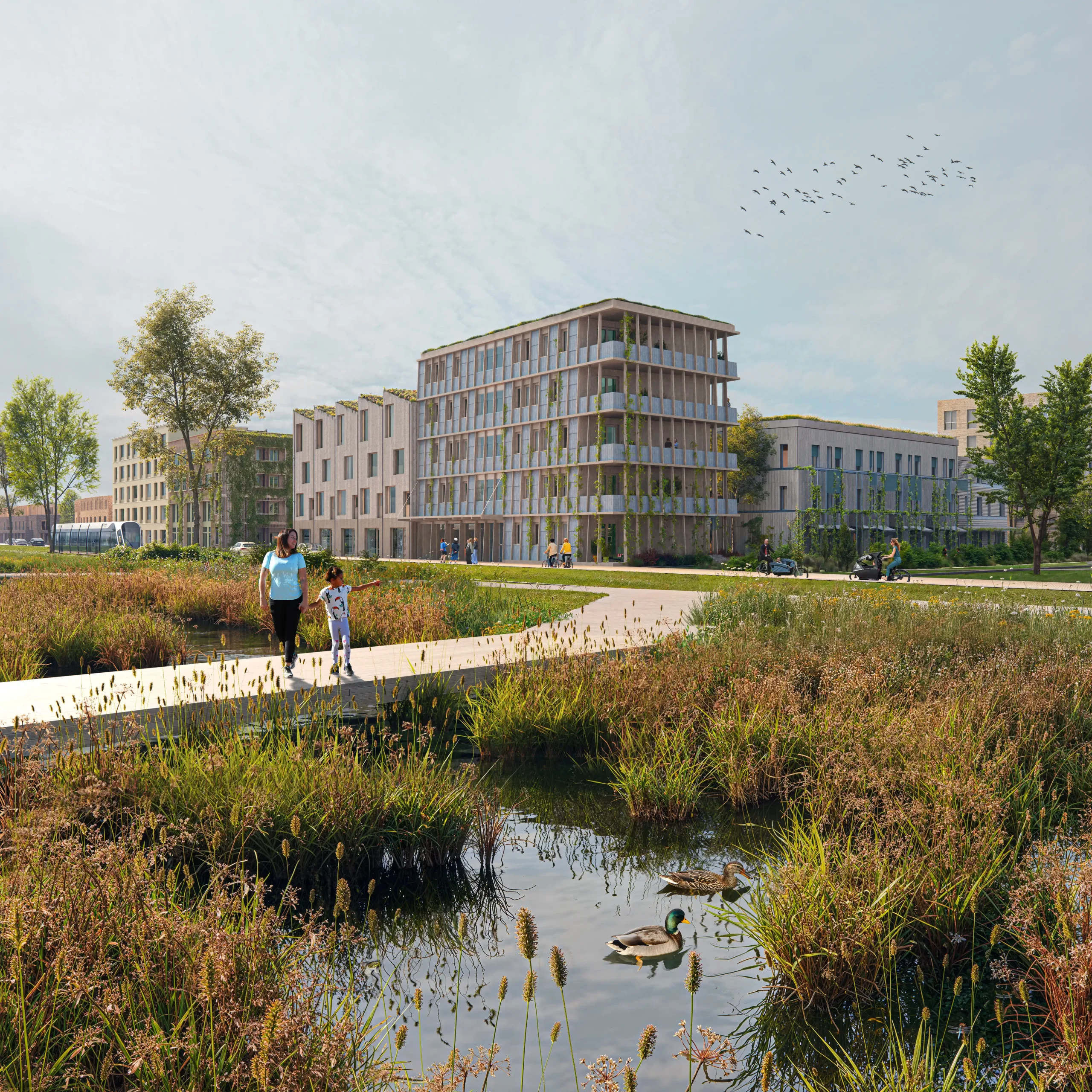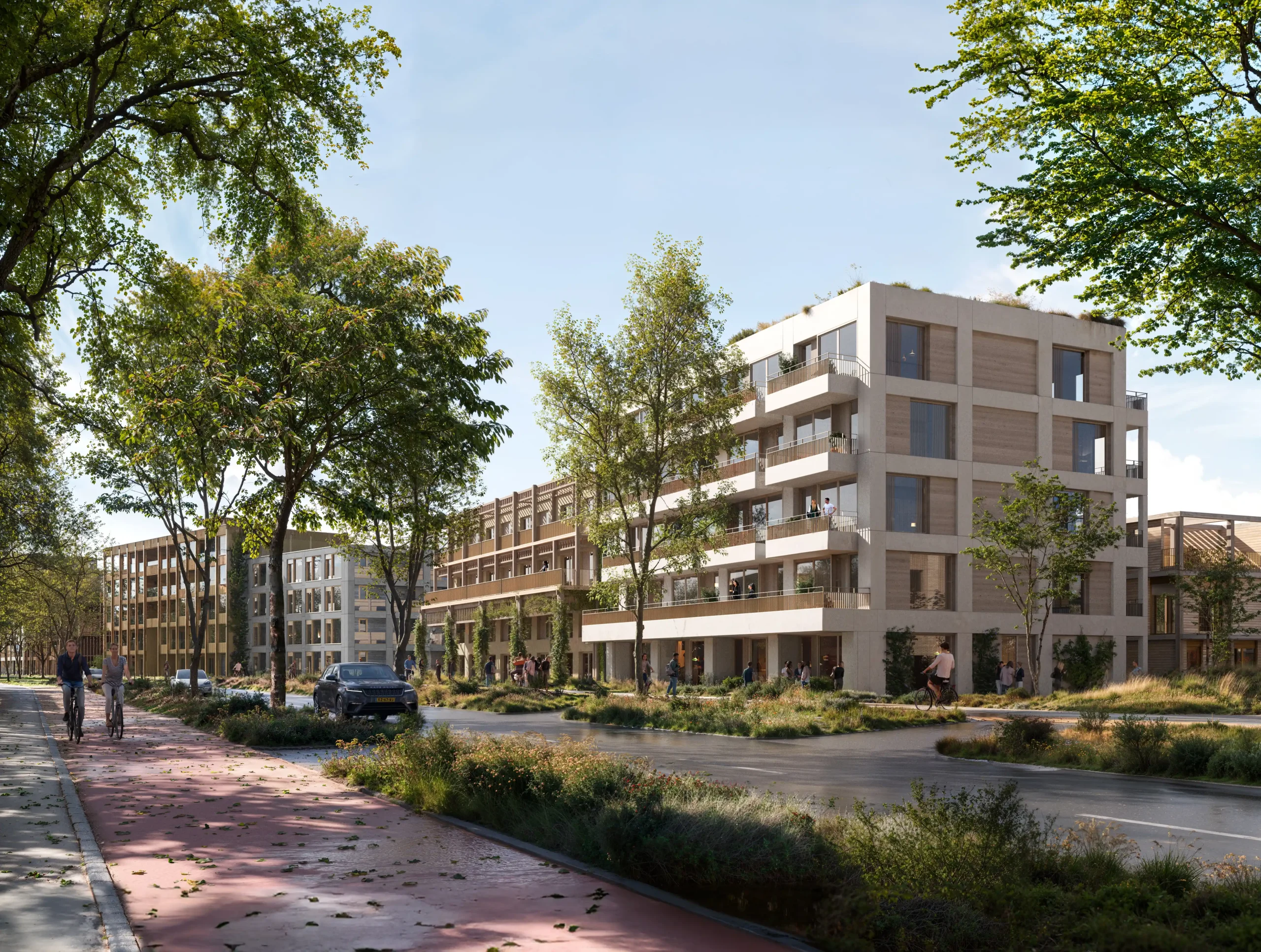 Dankzij de mix van woningtypen en groottes ontstaat er een buurt die ruimte biedt aan uiteenlopende levensfases en huishoudens. Met een mobiliteitshub voor deelauto’s en -fietsen wordt de wijk grotendeels autovrij, waardoor er nóg meer plek is voor groen, spel en ontmoeting.